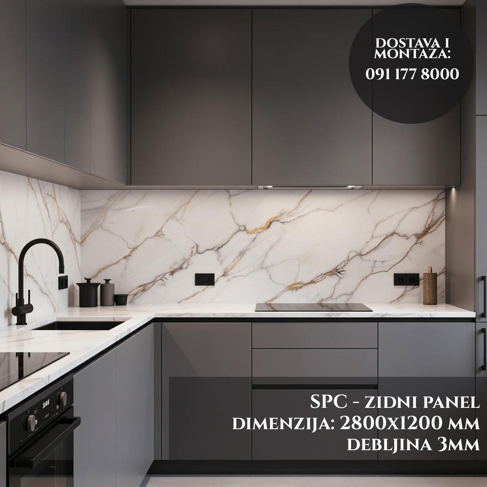Doživite spoj neuništivosti kamena i elegancije zlata. Gold mramor SPC panel pruža vizualnu dubinu pravog mramora uz visoku otpornost na habanje, čineći ga idealnim izborom za prostore koji zahtijevaju "vau" efekt uz nula održavanja.