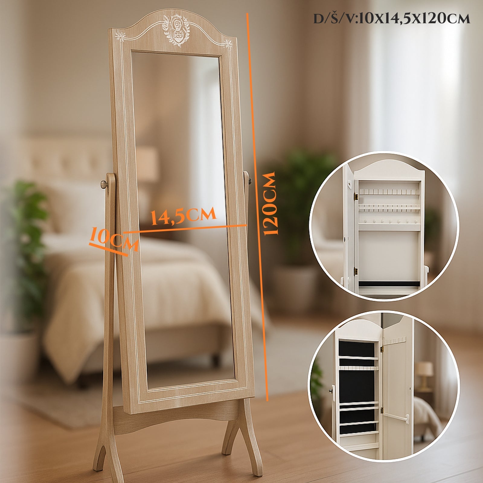 - 2 u 1 dizajn – veliko stojeće zrcalo + skriveni ormarić za nakit