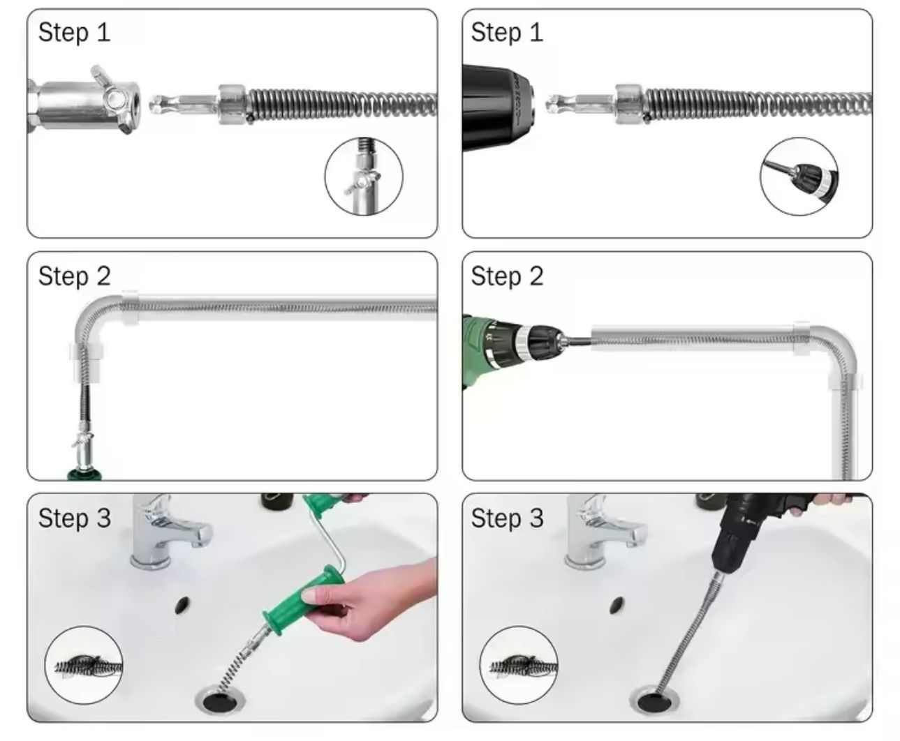 Spiralna konstrukcija omogućuje savitljivost i istovremenu snagu prodiranja u začepljene dijelove cijevi. Jednostavno se montira na bušilicu, a rotacijsko kretanje brzo razbija nečistoće, kamenac, masne naslage i druge prepreke.