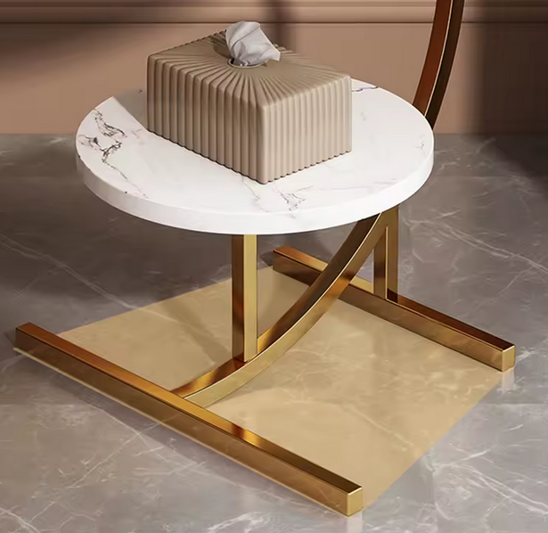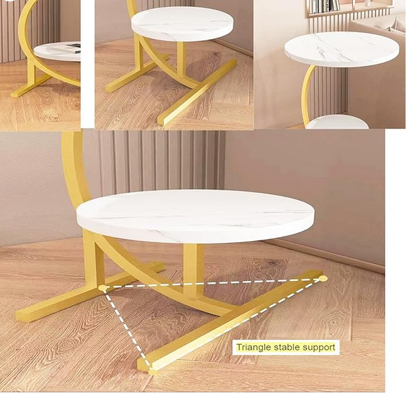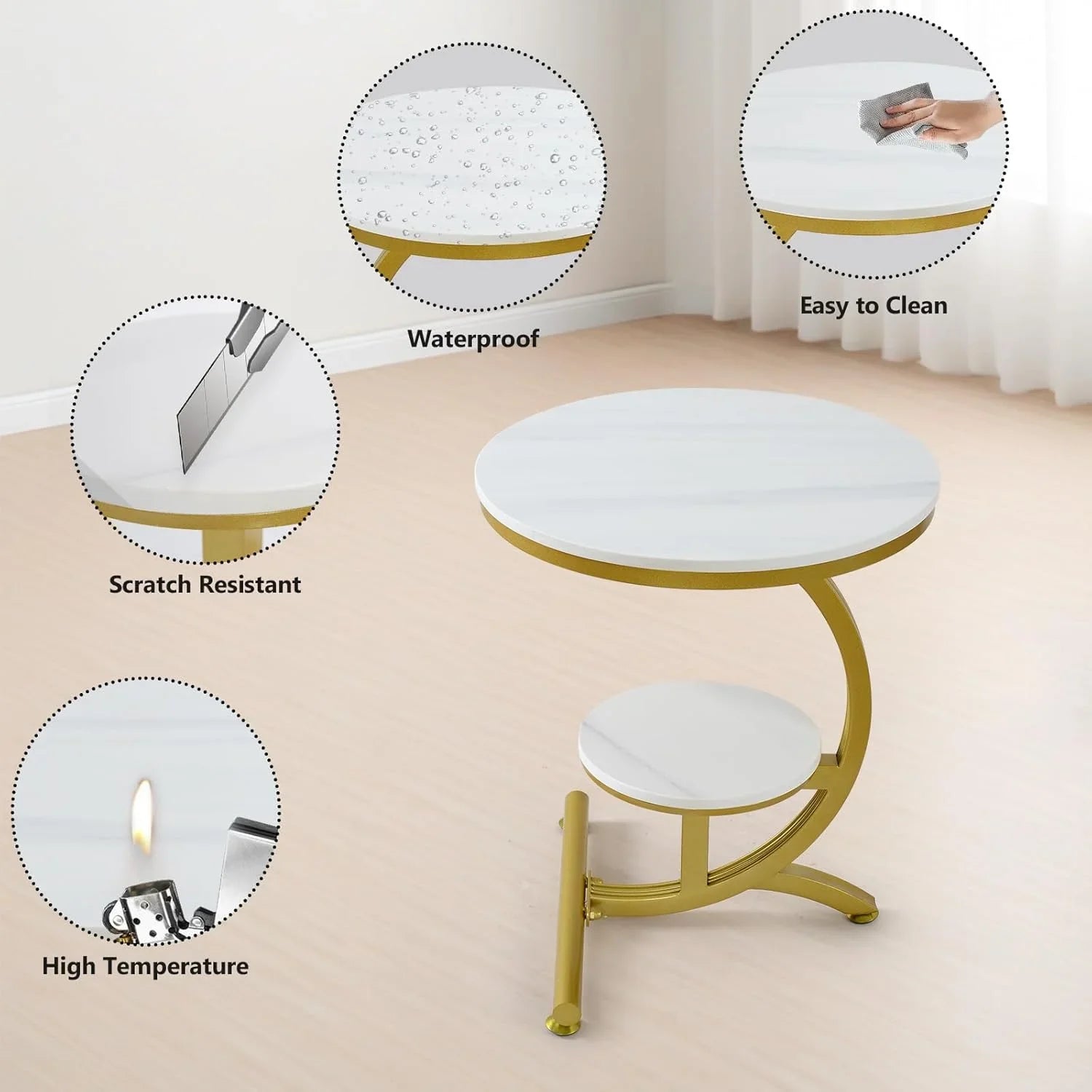 Okrugli stolić s dvostrukom površinom – mramor & zlato