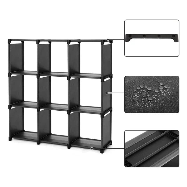 - 📚 9 prostranih kockastih pretinaca za knjige, cipele, igračke ili dekorativne predmete.