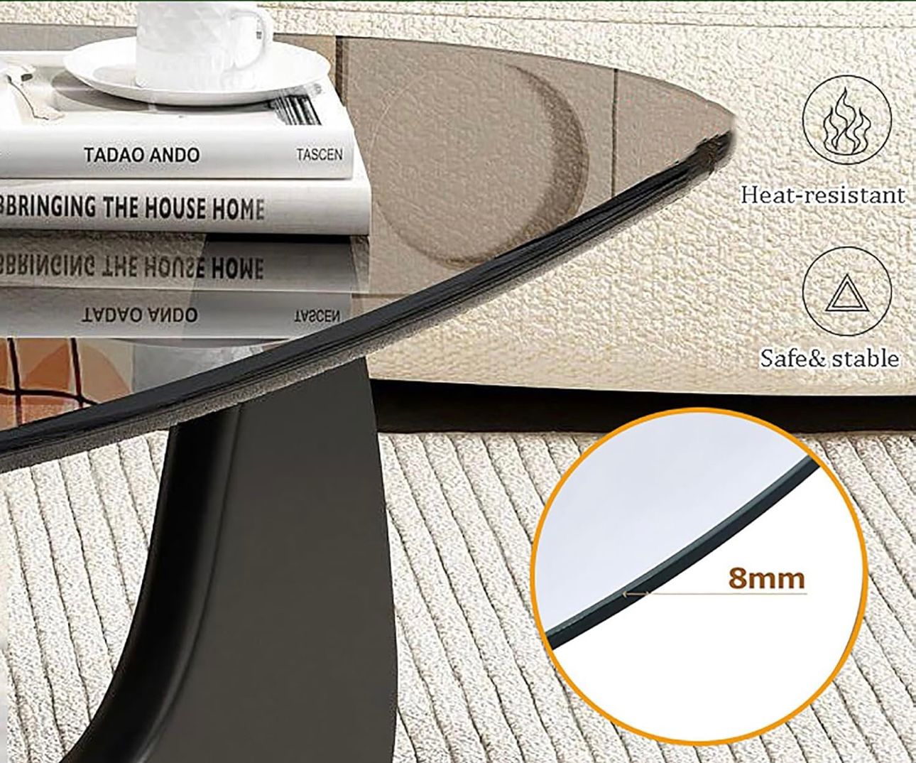 Dizajnerski stolić s asimetričnom bazom i prozirnim staklom – savršen za moderan i elegantan dnevni boravak.