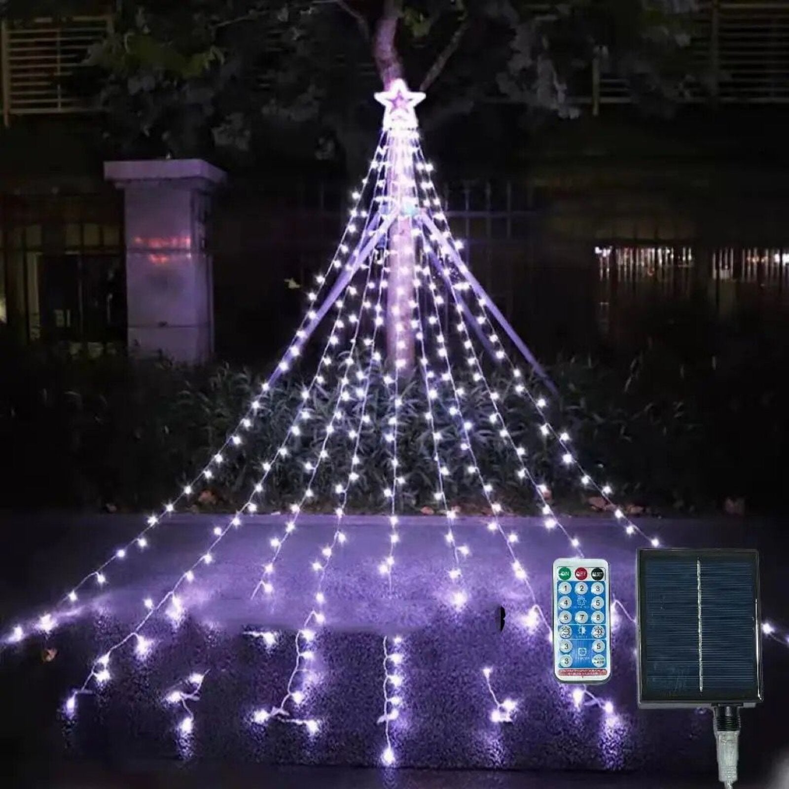 Velika zvijezda lako se objesi na drvo 🌲, krov 🏠 ili vanjski zid, a 9 svjetlosnih nizova pada prema dolje i stvara efekt “svjetlosnog vodopada”. Biraj hladno bijelu ❄️ ili toplo bijelu 🌟 – ovisno želiš li ledeni sjaj ili cozy ambijent.