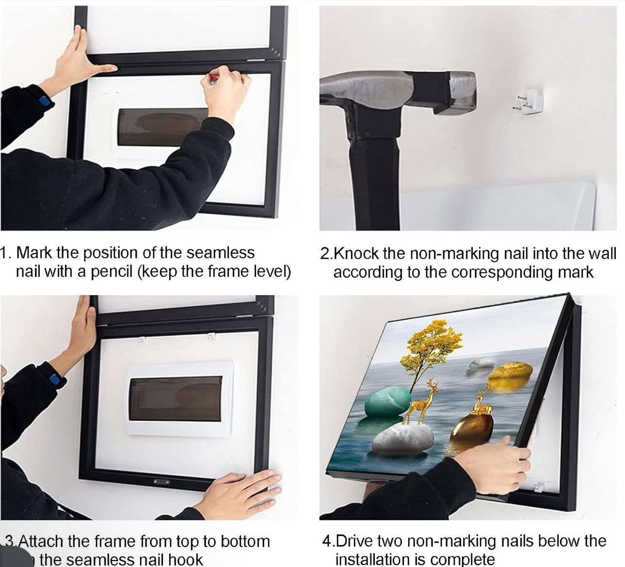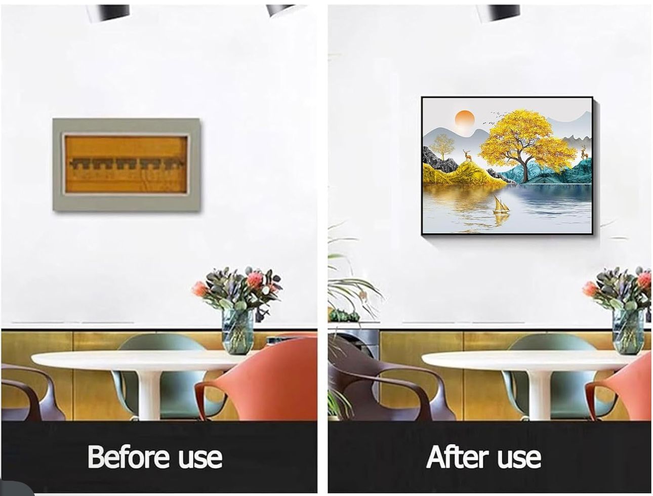 Elegantna zidna slika koja istovremeno ukrašava prostor i diskretno skriva ono što ne želite da se vidi – električne sklopke, sef, razvodnu kutiju, router i slično.